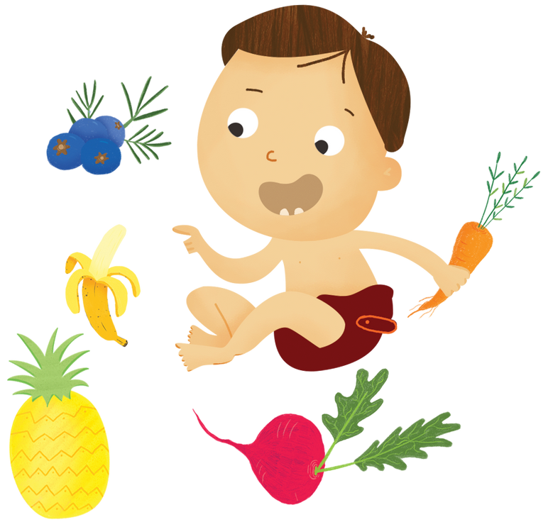 Cada letra tem ilustrações de diversos alimentos que são um estímulo para provar os sabores, para aprender os nomes, as cores e até mesmo buscar personagens escondidos.